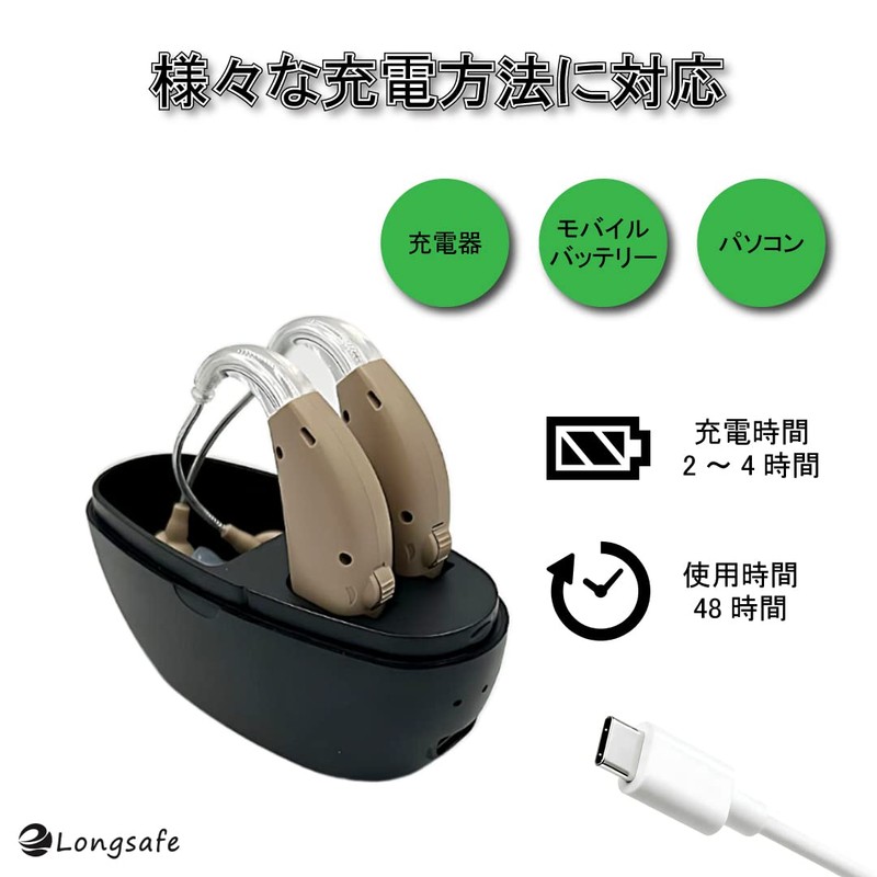 国内正規品 らくらく 集音器 高齢者 耳穴式 おすすめ 高品質 簡単操作 軽量 充電式 左右両用耳 掛けタイプ かんたん ワイヤレス 小型 両耳用 充電収納ケース 付き ノイズキャンセリング お年寄りテレビ 会話 (両耳 0100BG-BE)