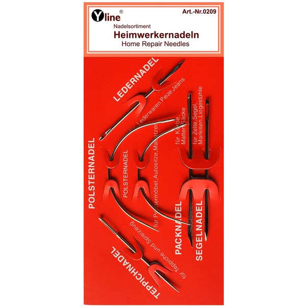 - 1 x packing needle, 1 x sailing needle, 2 x upholstery needles