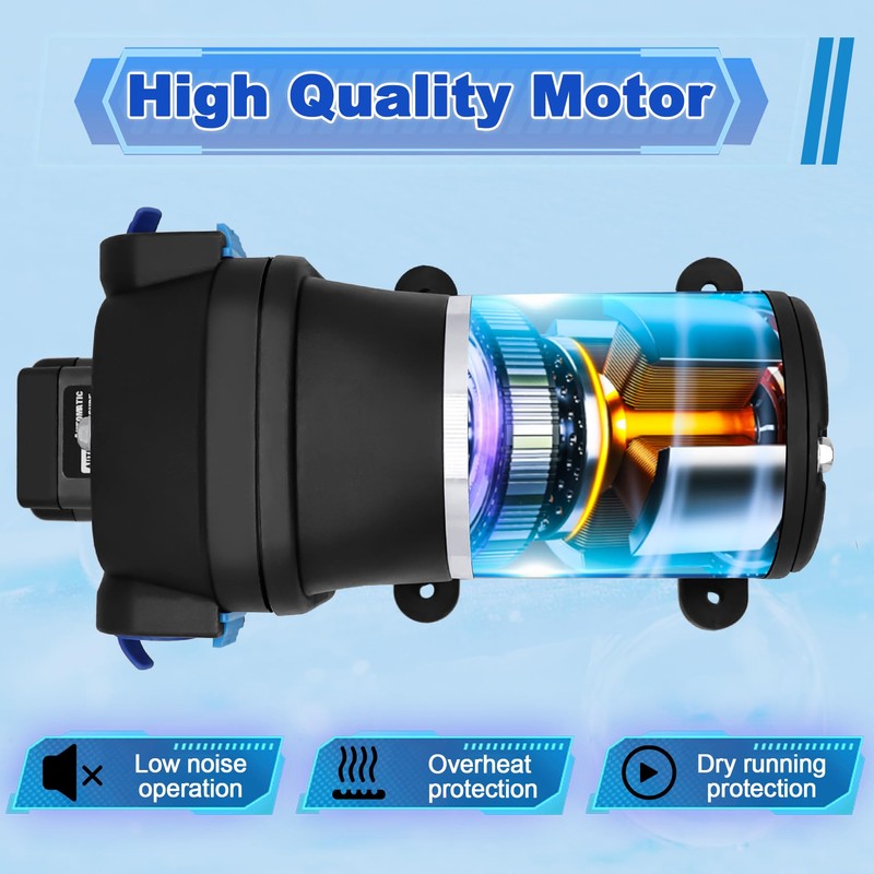 • 【Powerful Performance】This water pump replace part number 04406-143A/04406143A.Our water pump can immediately deliver up to 3.2 gallons (GPM) of water per minute at a stable pressure of 45 pounds per square inch (PSI), truly say good-bye to to low water pressure. 04406-143A water pump is widely used in RVs, boats, yachts, agricultural irrigation, etc. It can provide strong water pressure anywhere you need it.