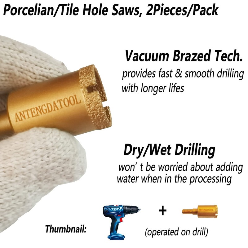1-1/2 Inch Dry Tile Hole Saws Set 2Pcs 38mm Diamond Drill Bits for Porcelain Ceramic Marble Stone Bricks with Triangle Shank by Antengdatool
