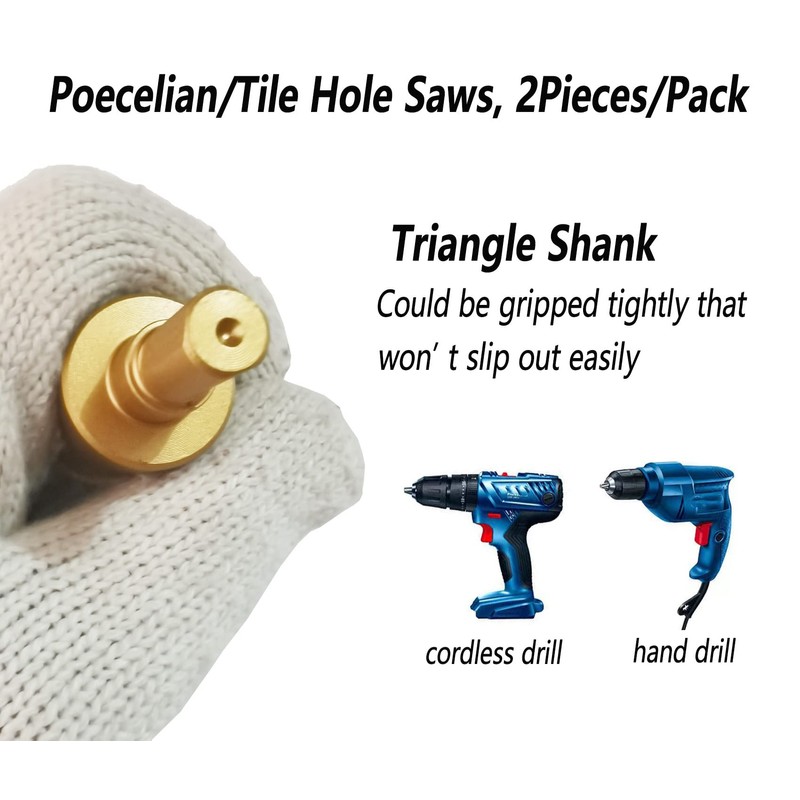 - Triangle shank design can be gripped tightly that won't slip out easily,used in 10mm (3/8 in) Hand Drill, Bench Drill