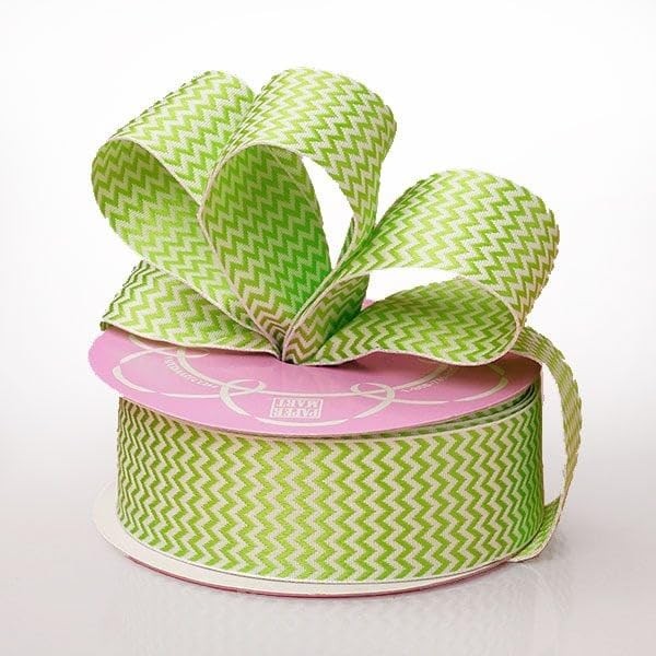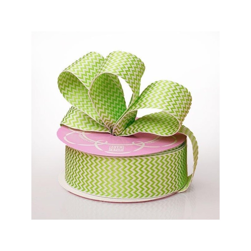 1 1/2" X 20 Yards Green Mini Chevron Woven Ribbon