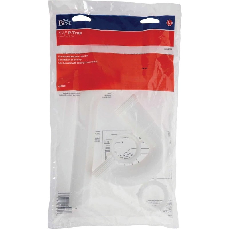 The Do it Best 1-1/4" White Plastic P-Trap traps debris while preventing toxic gases from seeping into your home. With an inlet and outlet dimension of 1-1/4", the P-Trap includes all necessary nuts and washers for bathroom tubular drain applications. Constructed of durable white polypropylene to match existing fixtures, the P-Trap offers a hand tighten installation for easy setup.