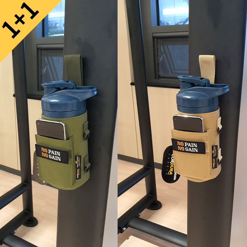 [1+1] Hellking Kong magnetic bottle pouch health magnet all-purpose water bottle bag towel earphone, 2 khaki 2 khaki_body only without towel holder only body without towel holder / [1+1] 헬킹콩 마그네틱 보틀 파우치 헬스 자석 만능 물병가방 수건 이어폰 , 카키 2개카키 2개_수건걸이 없이 본체만수건걸이 없이 본체만