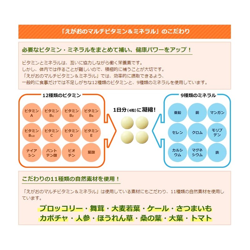 えがお マルチビタミン & ミネラル 1袋 124粒入り 1日4粒 1ヶ月分 栄養機能食品 自然素材