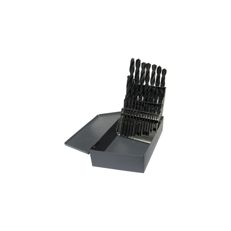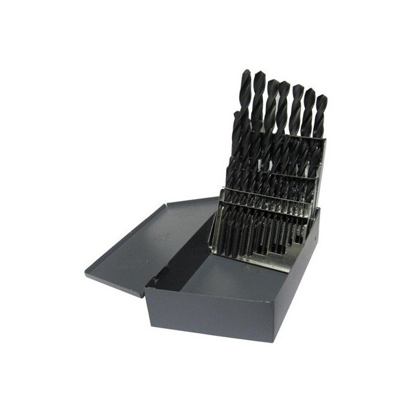 - Size: Set, Material: High Speed Steel, Finish: Gold, Shank Type: Round, Style: Jobber, Cutting Angle: 118, Point Type: Conventional Point, Number of Flutes: 2, Cutting Direction: Right Hand, Pieces in Set: 29