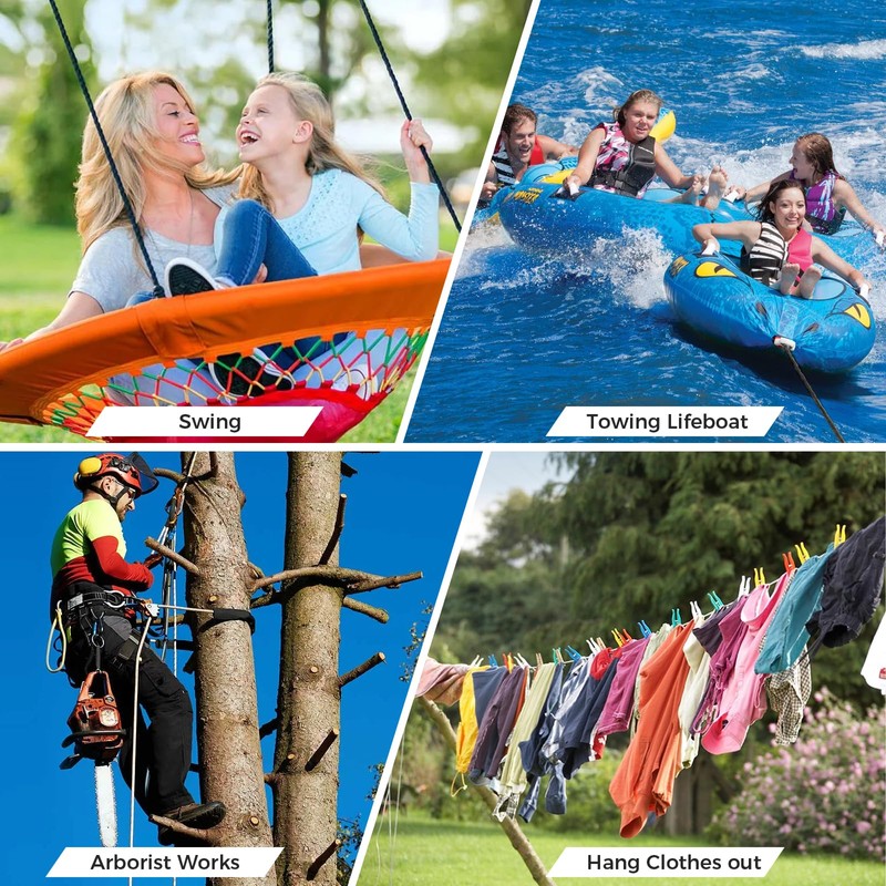 - Versatile: Strong braided rope which is lightweight and multi-purpose, will be convenient to carry and use. It will be suitable for lifting, tree artist rigging, ship anchor, car traction, sailing, swing, etc.