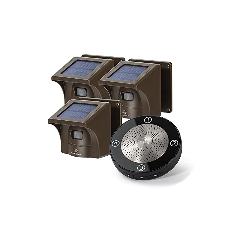 - eMacros ADVANTAGE-30 years+ solar driveway alarm wireless and solar driveway alert system produced in our own factory with our leading-edge systems technology. Wireless Solar Driveway Alarm Includes 1 AC Powered Receiver and 3 Sensors. SOLAR POWERED NO NEED REPLACE BATTERIES- The sensor is powered by a built-in rechargeable lithium-ion battery which will be charged by the solar panel, so no need to replace the battery, the sensor also can be powered by the DC5V power adapter.