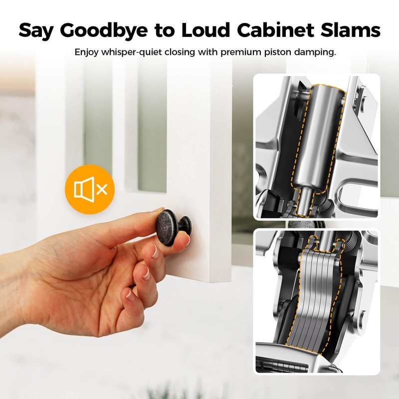 - 🔇 Soft Close Cabinet Door Hinges—No More Slamming Built-in damping system ensures smooth, silent closure of your cabinet doors—protecting your kitchen cabinet hinges and ensuring a peaceful home.