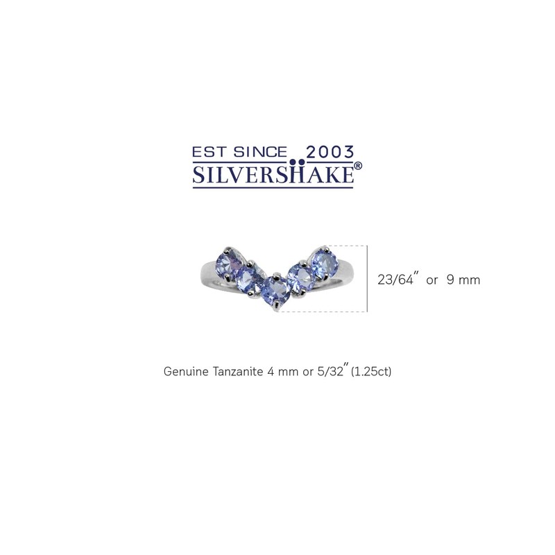 1.25ct. 5-Stone Genuine Tanzanite V-Shape 925 Sterling Silver Ring Size 7