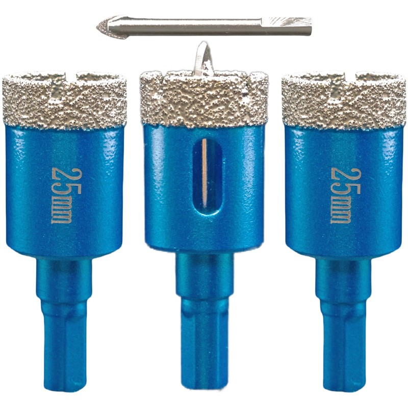 - √【Specifications】Diameter: 1" (25mm); Length: 2.6" (65mm); Working Depth: 1.4" (36mm); Hex Shank: 3/8"; Components Included: 2 pcs diamond core drill bits + 1 pc hole pilot drill bit + spare pilot drill bit; Weight: 0.18lb*3; Package Weight: 0.57lb