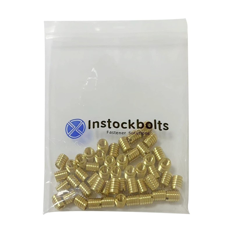 1/4"-20 Threaded Insert for Hard-Wood, Brass Knife Thread Inserts, 1/4"-20 Internal Threads, 0.5" Length, Pack of 25