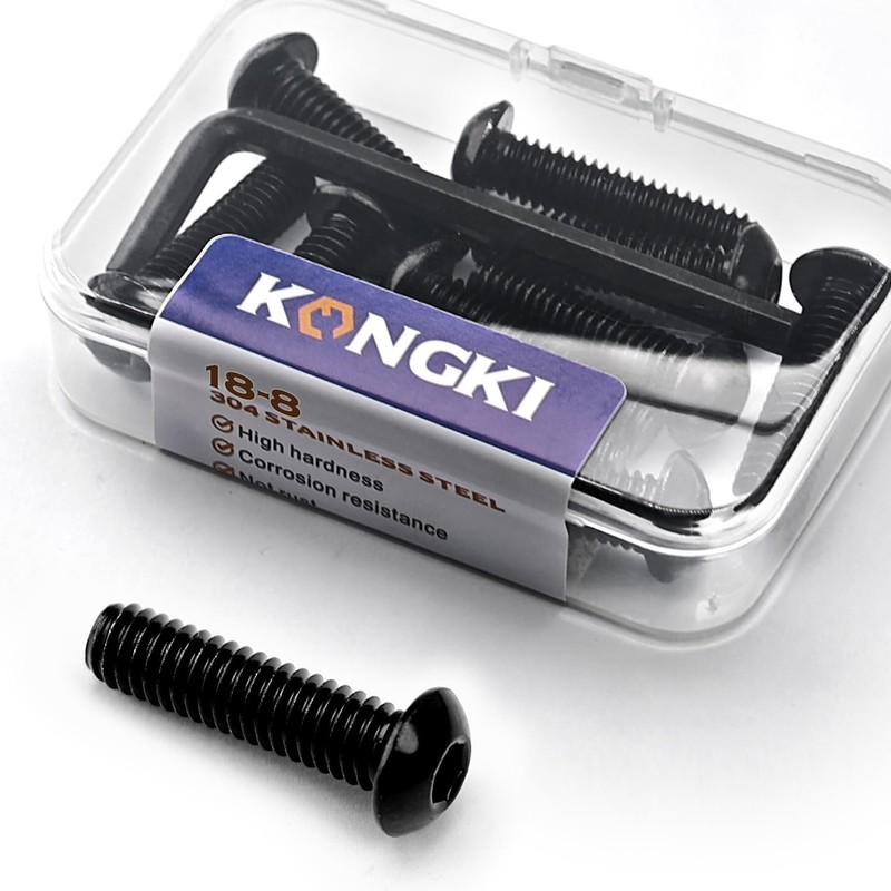 1/4-20 x 1-1/4 Button Head Socket Cap Screws, Stainless Steel 18-8(304), Black Oxide, Allen Hex Drive, Full Thread, 10 PCS (with Hex Spanner)