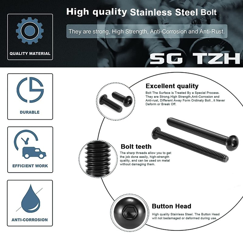 - RUGGED AND DURABLE - SG TZH Button Head Socket Cap Bolts Screws made of high-quality 18-8(304)Stainless Steel,which has higher corrosion resistance and anti-rust effect than ordinary bolt, longer service life, not easy to damage, more solid.