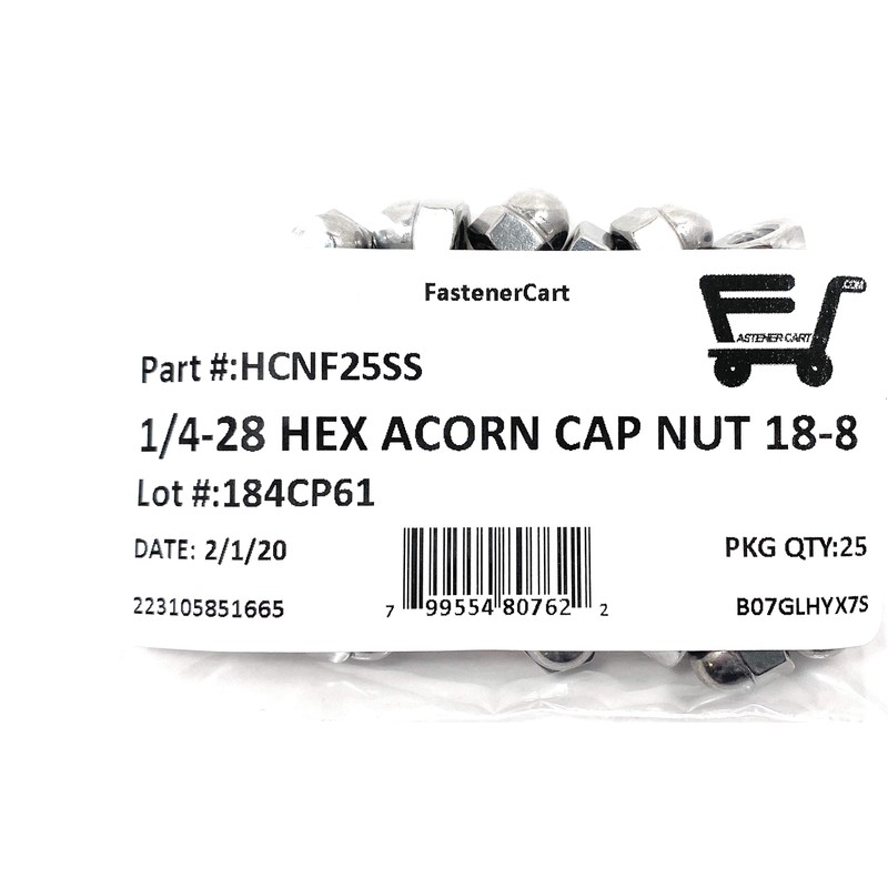 1/4-28 Acorn Cap Nuts 18-8 Stainless Steel - Fine Thread UNF (25 Pieces)