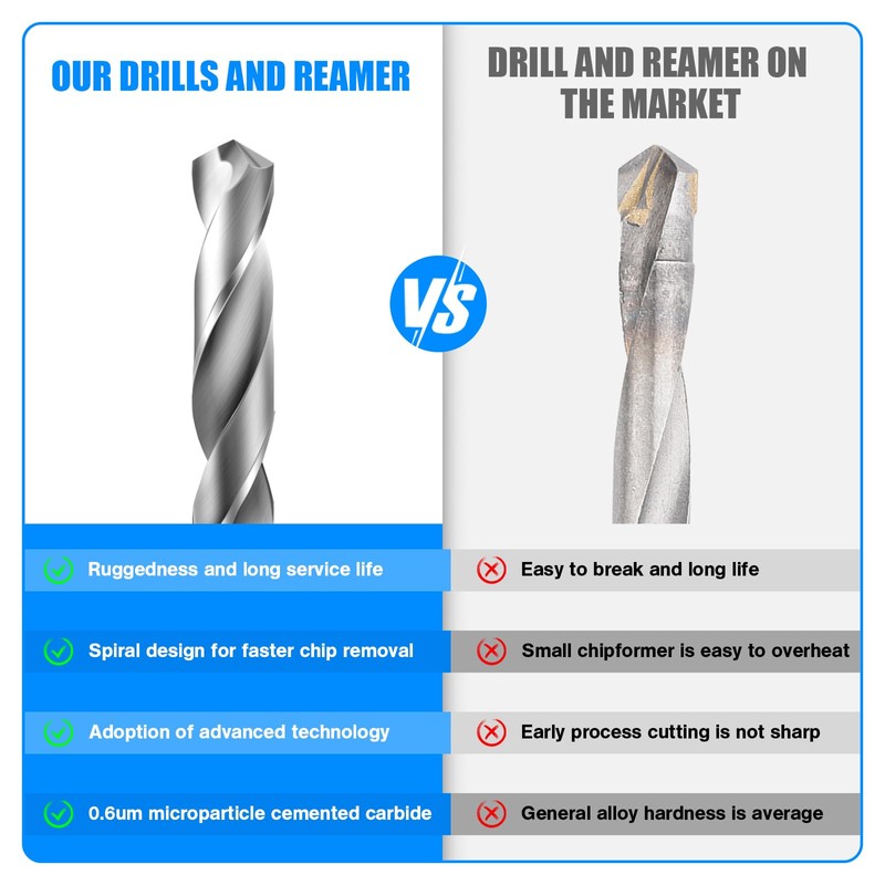 - Tungsten Steel Material: Crafted from 0.6um micro-particle cemented carbide, HOYUSK’s carbide drill bits provide unmatched wear resistance and strength. As an exclusive drill bit for high hardness and high-speed cutting applications, it significantly improves work efficiency. The metal drill bits for steel are engineered to handle tough materials with ease, ensuring long-lasting performance.
