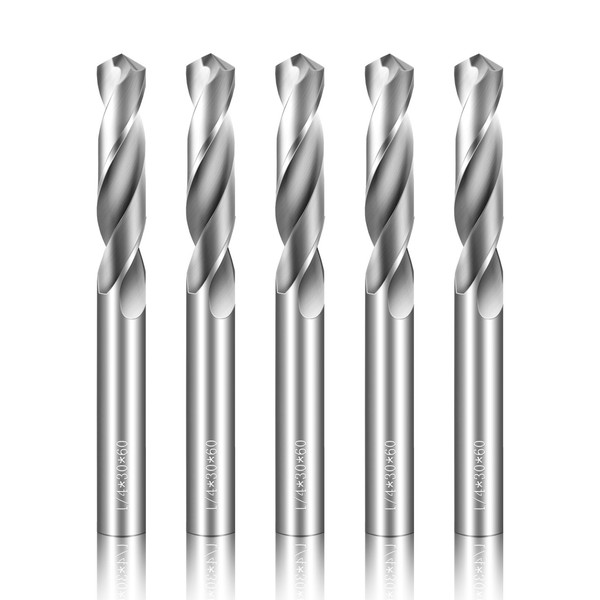 1/4" Drill Bits Solid Carbide Drill Bits, Tungsten Carbide Drill Bit Set, Metal Drill Bit Set for Stainless Steel Hardened Steel Cast Iron Alloy Copper, 5 Pcs