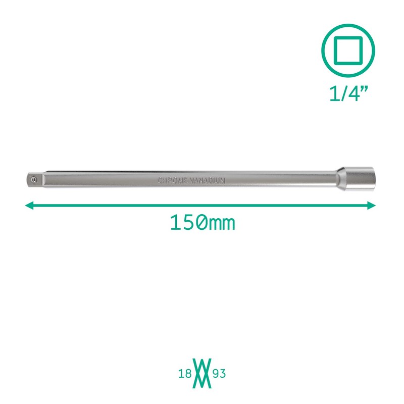 1/4 inch 150mm Extension for Socket Wrench from WIESEMANN 1893 | 6,3mm (1/4”) Drive | Chrome-Plated CV Steel | 80843