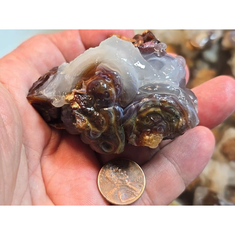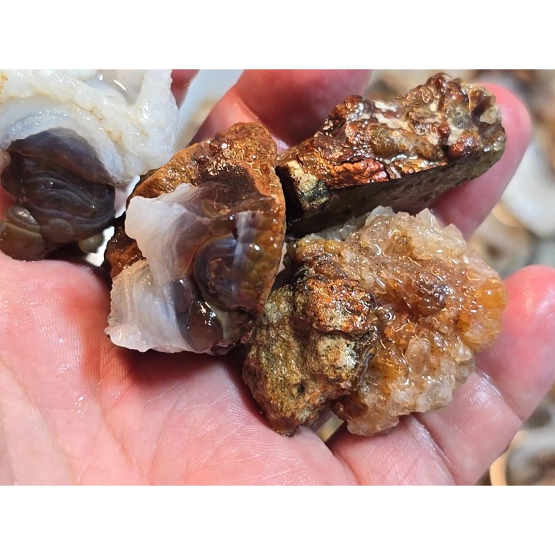 I don’t include pieces that are too small or heavily included. I try to make sure that each piece has the potential to create a beautifully finished stone, with skilled carving. I teach my carving techniques on YouTube at Fire Agate Mark. I’ll be posting a video of me grading these stones. Just search Fire Agate Mark grading Stones.