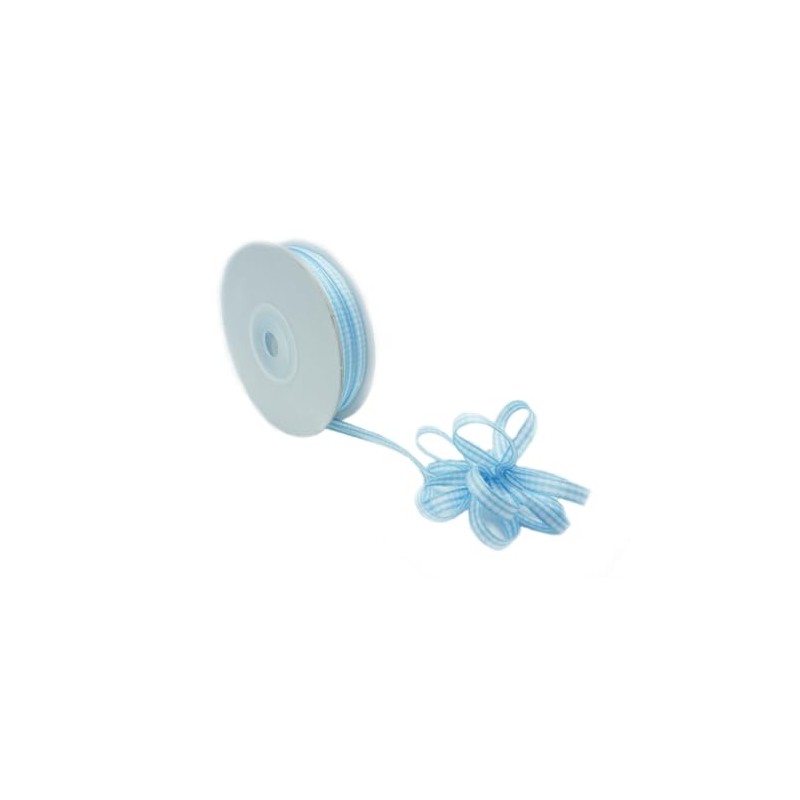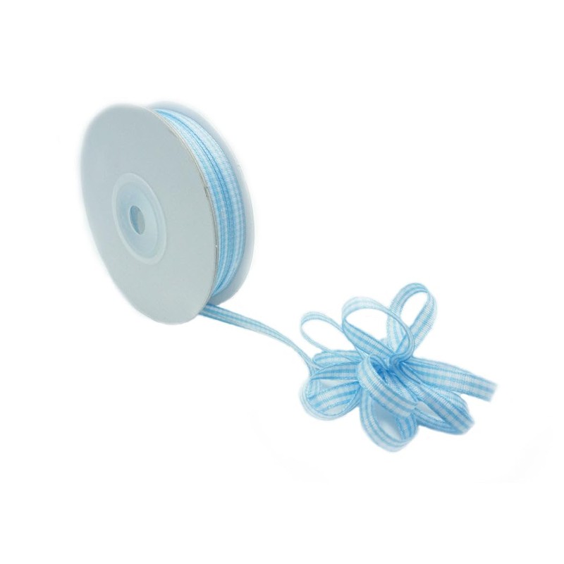 1/4" X 25Yard Gingham Pull Bow String Ribbon Blue Baby Shower Favor Decorating