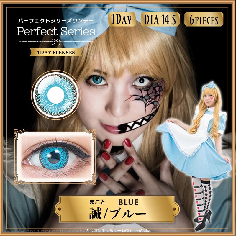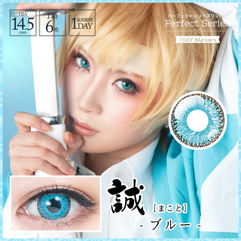 パーフェクトシリーズワンデー コスプレ カラコン 青 水色 ブルー ターコイズ 度あり 1箱6枚【誠 まこと -2.00】