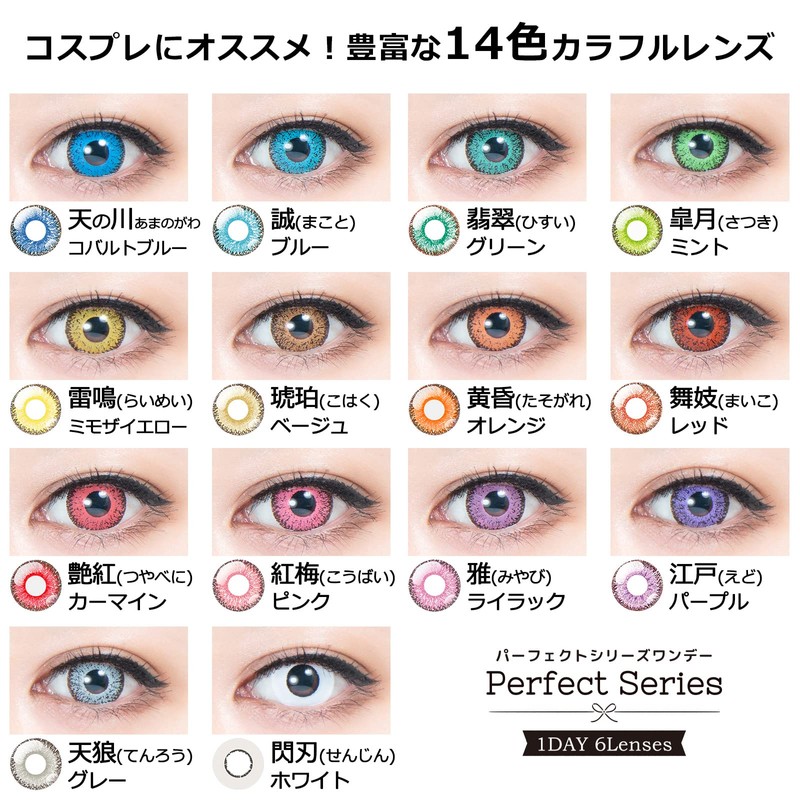 - パーフェクトシリーズワンデーは1箱6枚入りのコスプレ向け高発色 ワンデーカラーコンタクトレンズです。