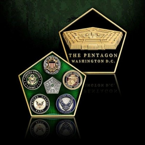 The 1.75" The Pentagon Shape Washington D.C. Challenge Coin is a unique and symbolic collectible item that pays homage to the iconic Pentagon building in Washington D.C. This challenge coin features a distinctive pentagon shape design, making it a standout piece for any coin collection. Its size of 1.75" adds to its impressive and striking appearance, making it a great addition for military enthusiasts and collectors alike.