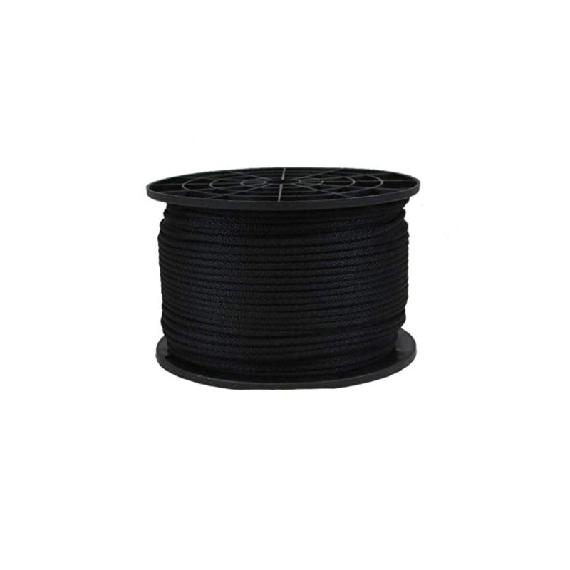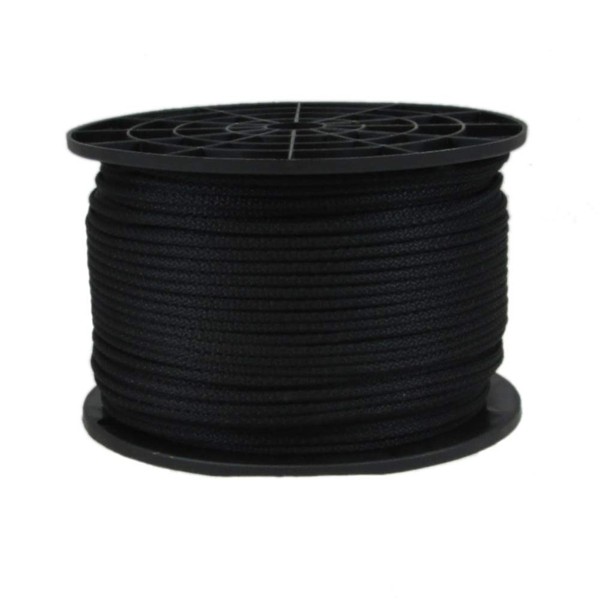 • 500 feet of 1/8" (3.2mm) Solid Braid Black Polyester Rope on a Sturdy Spool