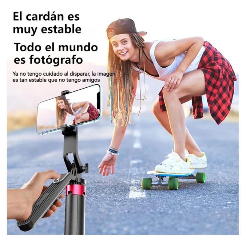 Altura ajustable, Bluetooth integrado, compatible con múltiples celulares. Ideal para fotos, vlogs y videollamadas.
