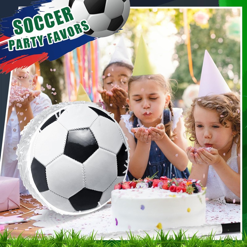 Ecation 1 Ball Piñata Set with Blindfold, Baton and Paper Scrap, Stickers, Keychains, Bracelets, Mini Balls for Birthday Decoration Sport Themed Party Supplies(Soccer)