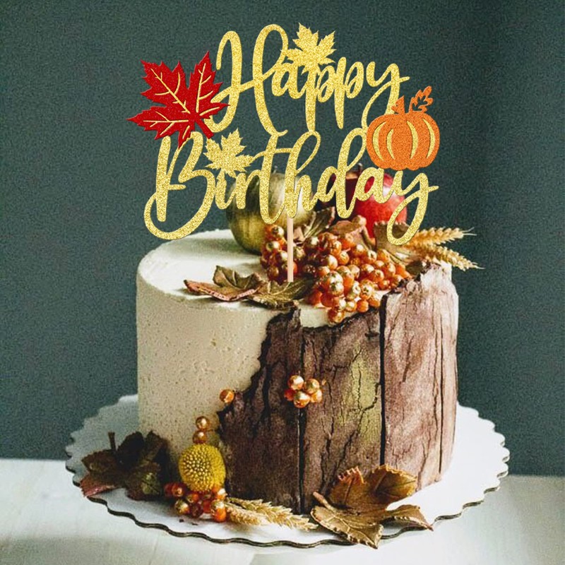 1 decoración para tarta de cumpleaños con diseño de calabaza, hojas de arce con purpurina, decoración para tarta de Acción de Gracias para día de Acción de Gracias, suministros de decoración para fiestas de cumpleaños