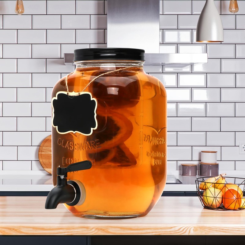 - Wide Mouth Design: Our glass Mason jar beverage dispenser has a wide mouth design with a black screw-on lid that makes it easy to fill and clean.