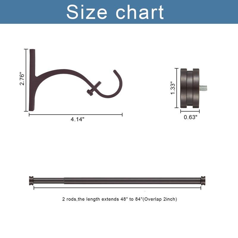 - 【Adjustable Rod Length】There are 28-48” , 48-84” and 72-144” curtain rod size option in our store.Telescoping curtain rods can extend easily accommodate to different size windows. Just adjust the overlap length to meet your requirements.