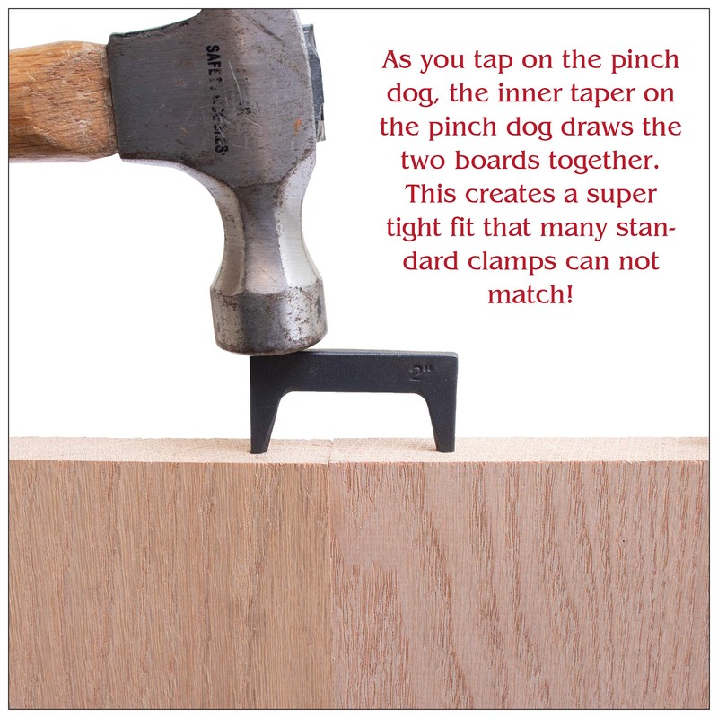 - As the old saying goes; “you can never have too many clamps” if you’re a woodworker. This holds especially true when it comes to achieving near seamless or tight fitting joinery. While using long bar clamps or pipe clamps to glue up panels will work, sometimes you may need a helping hand or “pinch” in certain cases to get the seem just right. Using pinch dogs to pull your or “pinch” the panel joint together is an old tried and true method that is still commonly used today.