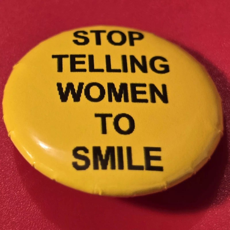 1 Inch Yellow Stop Telling Women To Smile Round Pinback Button Pin