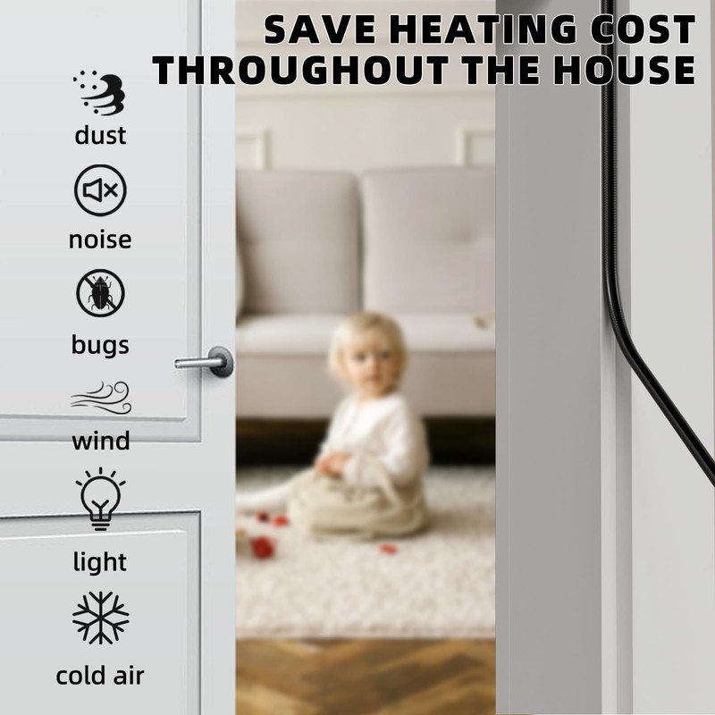 • Peel and Stick Easy Installation: 1 minute installation — clean and dry the surface, remove the backing film and stick the door insulation strip to the installation surface, cut off the excess