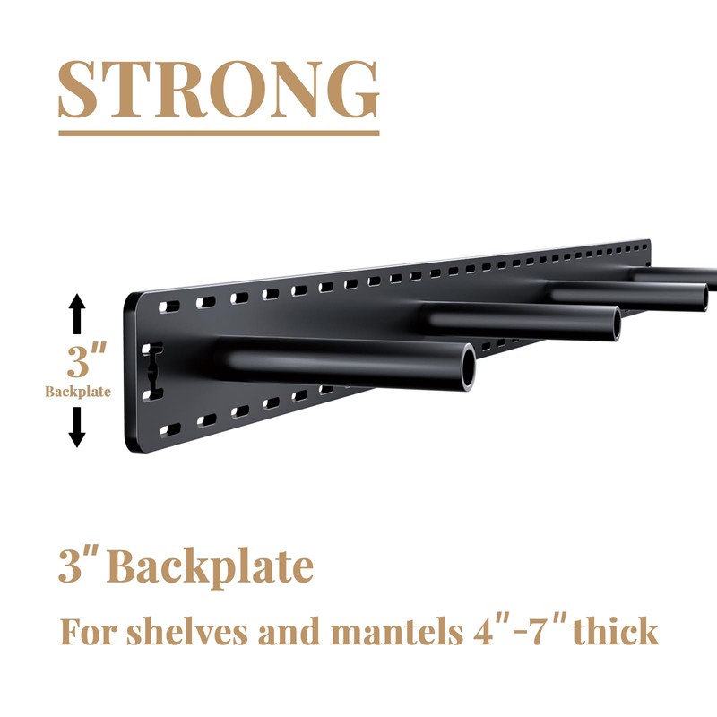 - 【Heavy Duty Fireplace Mantel Brackets】Craftersmark heavy duty floating shelf bracket tailored for fireplaces,43 inches in length to fitting 44-60 inch fireplace mantel. The large shelf brackets backplate was designed in 2 sizes, 1.5 "and 3", compatible with 2.5-4 "and 4-7" thick boards, respectively. ensuring a secure match. Choose the right brackets for stability, enhancing fireplace safety.