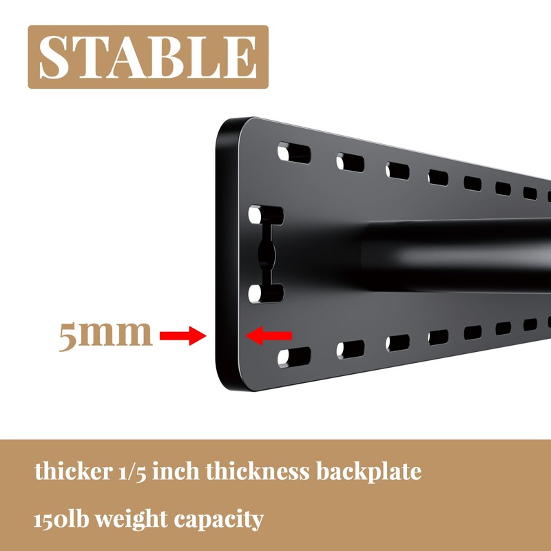 - 【Sturdy Metal Brackets】Crafted from robust galvanized steel, our black bracket boasts a 5mm thick backplate, among the market's sturdiest. With a 150lb weight capacity, confidently store boards. The welded tube and backplate connection guarantees stability, preventing loosening and ensuring boards remain vertical. Our 1.5mm thick rod outshine competitors.Designed for efficiency, our long shelf brackets bring exquisite craftsmanship and solid structure to your space, fostering organized living.
