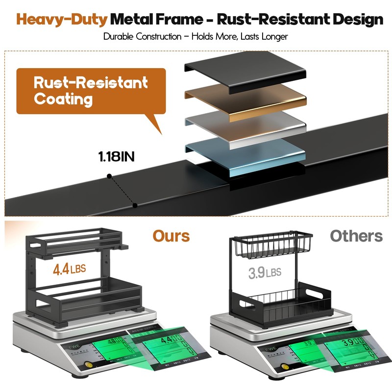 - 【Sturdy metal sheet frame&Rust-Proof】The under sink organizer is built from solid metal sheets with a strong frame and superior rust-resistant design, making it durable and ideal for long-term use in humid areas like kitchens,bathrooms and Laundry Room.