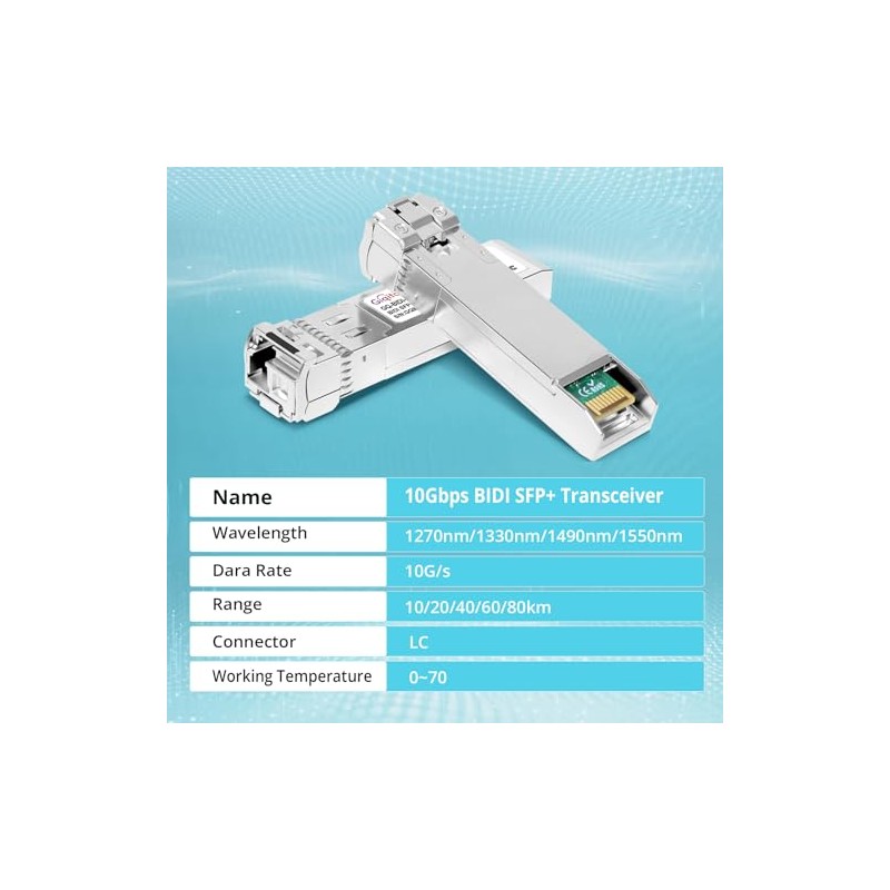 • Plug and Play: Hot pluggable, SFP+ MSA Compliant. Each pair of bi-directional SFP+ module, will tested by a skilled technician to ensure premium quality, reliability and interoperability.