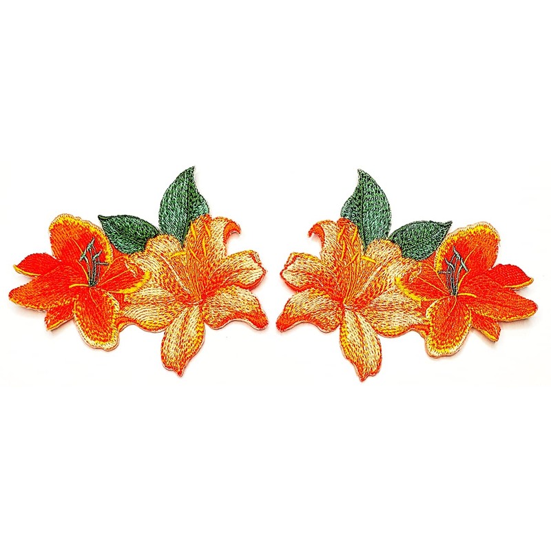 1 Pair Beautiful Orange Hibiscus Embroidered Iron on Sew on Patch for Costume Clothe Jeans Jackets Hats Backpacks Shirts Fashion Arts Tropical Hibiscus Flower Cartoon Sticker Patches