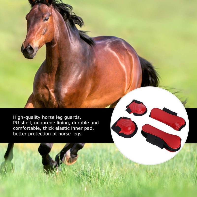 1 Pair Horse Support Boots, PU Secure Leg Protection Horse Tendon Boots Breathable Wrap Less Sweat and Rubs Equestrian Equipment(L-Red)