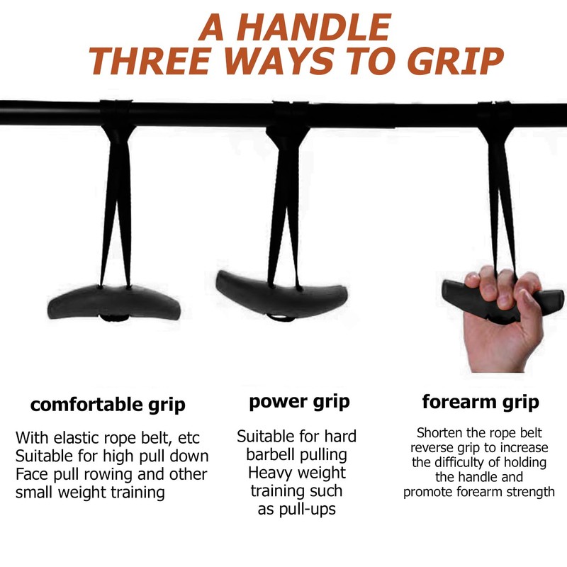 1 Pair of Fitness Grips, Rowing Handle with Adjustable Resistance Band, Cable Pull Handles Attaches to Pull-Up Bars, Barbells, Lat Pull Machines, Rowing Machines, Cable Pull and Power Machines, Black