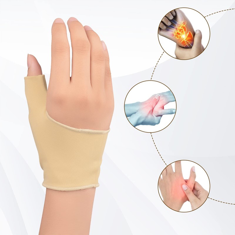 - Enough Hand & Wrist Support & Splints - You will receive 1 pair of fingerless thumb rests in nude colors, with the feature of the stretch fit, one size fits all that easily fits under gloves without being bloated, unisex and useful.