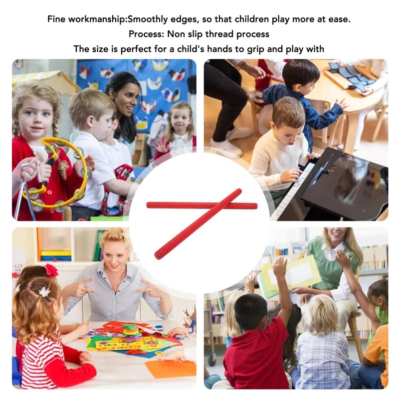 [Slip resistant craftsmanship] The rhythm sticks feature a slip-resistant textured , ensuring a secure grip and added safety during playtime.