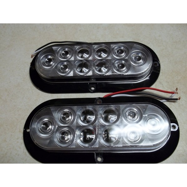 1 pair Trailer Clear / RED LED Stop Turn Tail Light 6" Oval Surface Mount Optronics
