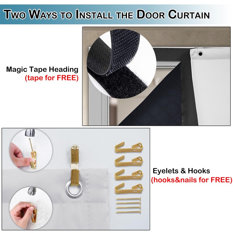 • ♥♥Two Ways of Installation♥♥The curtain comes with multiple fastening options, including hooks and magic tape, allowing you to choose the best way to secure it to your doorway. This feature makes it practical and easy to install, ensuring that it stays in place and performs well over time.