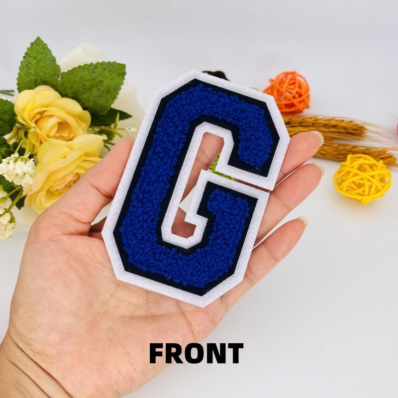 1 PCS 4.0" Blue Chenille Letter Patch, Iron on Patches for Hats Clothes Bags Backpacks Jeans Jackets, Initial Patches Large Varsity Letter. (Letter G)