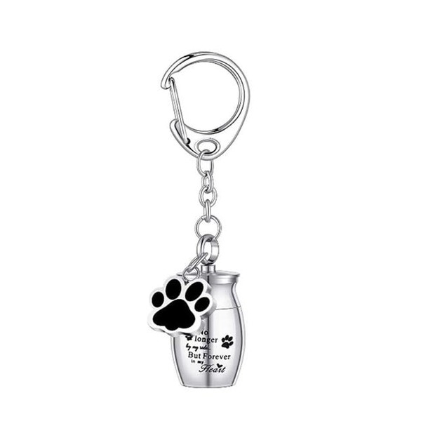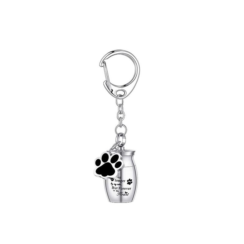1 Pcs Silver Pet Urns Keychain, Stainless Steel Cat Ashes Urn, Small Pet Urns for Dogs Ashes Keepsake, Pet Dog Cat Cremation Jewelry Pend Paw Print Memorial Urn with Velvet Storage Bags
