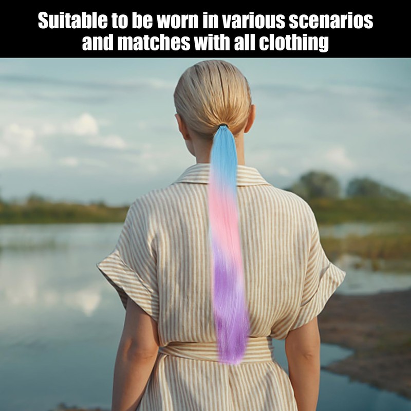 - 🌈Product material: This colourful ponytail is made of high temperature wire material, which has excellent elasticity and suppleness. The hair is fine and smooth, with a natural touch and shows your charming style.